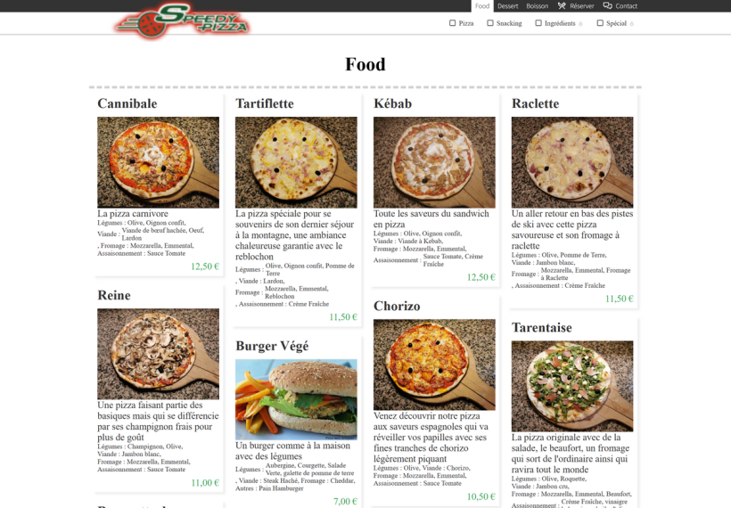 Site vitrine pour un restaurant/snack proposant une large gamme de pizzas originales, burgers et menus variés.